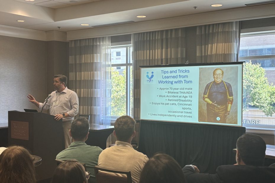 Last year, Ryan attended Skills for Life 7 (SFL7) in Houston, Texas, held October 16–18, 2025. He is honored to participate in the workshop, bring a patient, and connect with the community. Ryan also delivered a presentation highlighting his patient, Tom, sharing tips and tricks learned from a bilateral transhumeral prosthesis user for 50 years.